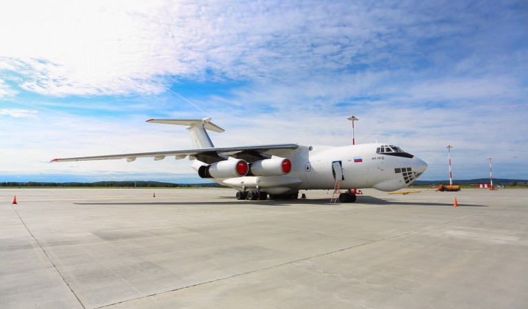 Тяжелый транспортный самолет Ил-76ТД из парка грузовой чартерной авиакомпании «Авиакон Цитотранс» на перроне аэропорта «Кольцово»