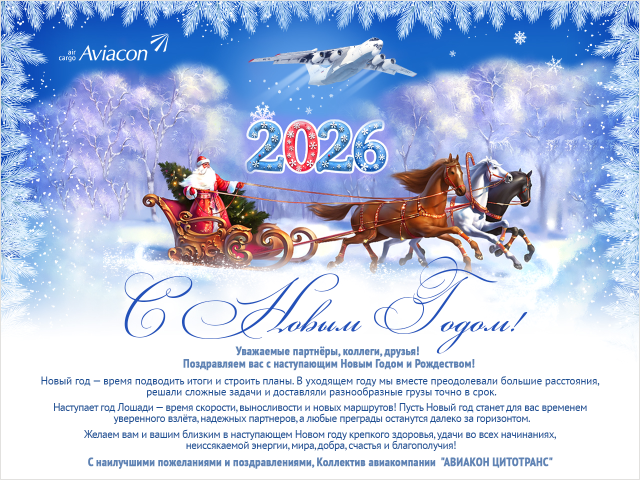 Команда «Авиакон Цитотранс» поздравляет с наступающим Новым 2026 Годом и Рождеством!